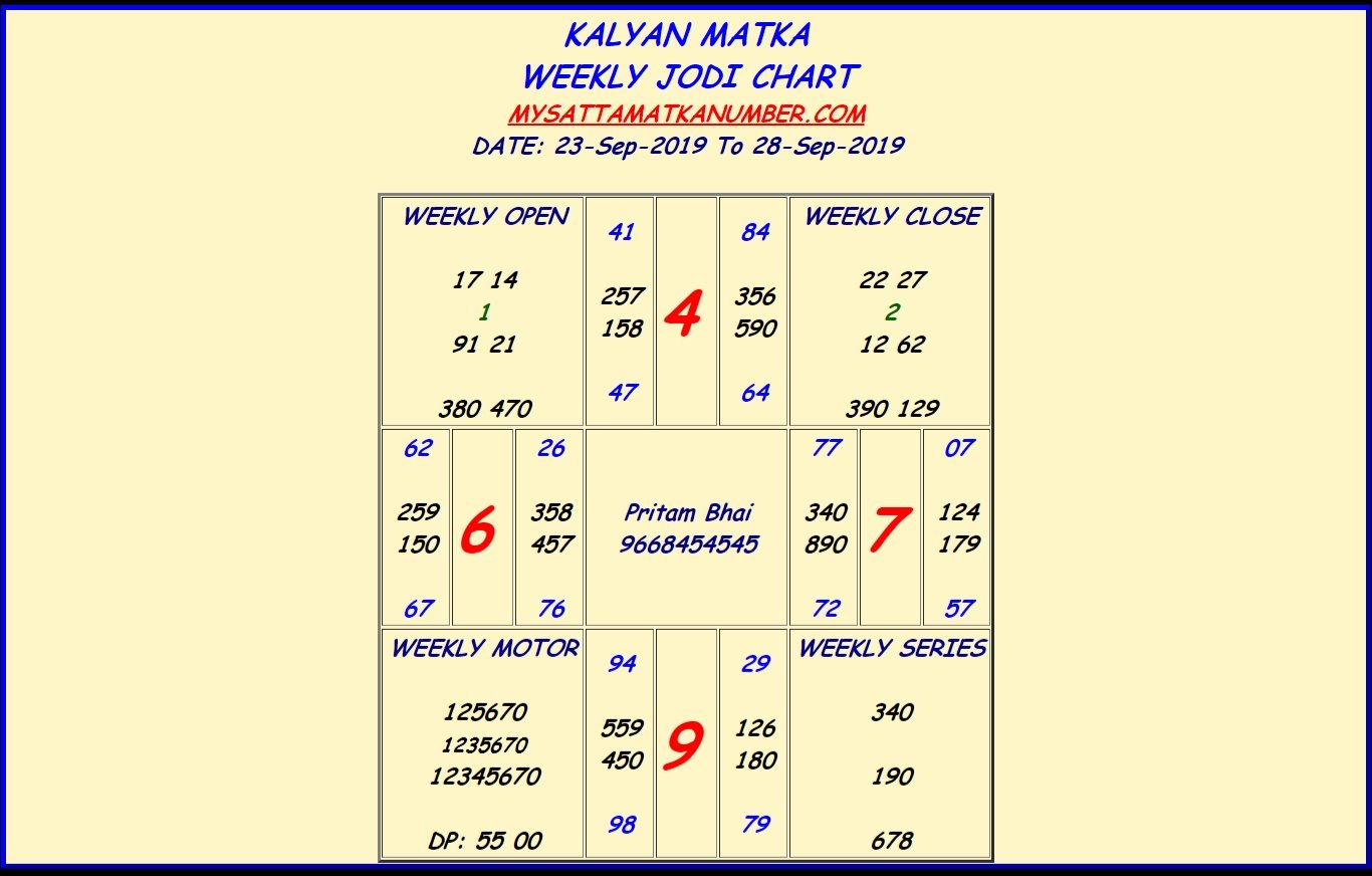 - Weekly Kalyan Chart: This chart focuses on weekly outcomes in the Kalyan market, providing insights into trends and fluctuations over a seven-day period.